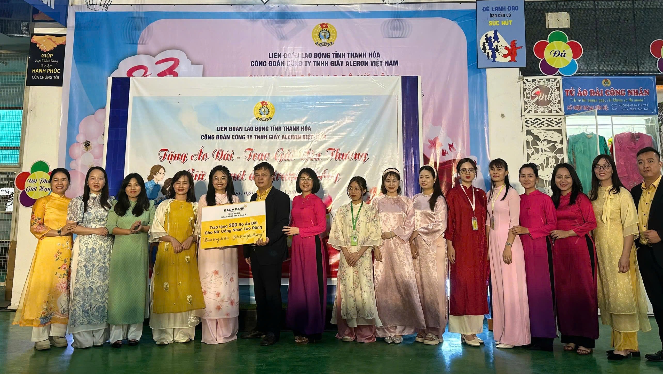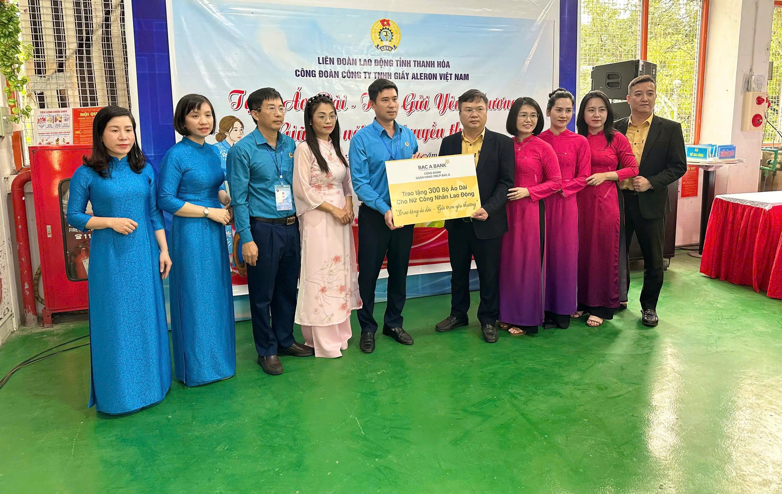 Chương trình được tổ chức tại Công ty TNHH Giày Aleron Việt Nam, với sự tham gia của đại diện Công đoàn BAC A BANK và đông đảo nữ đoàn viên, người lao động đang làm việc tại khu công nghiệp. Tại đây, 300 bộ áo dài đã được trao tận tay các nữ công nhân có hoàn cảnh khó khăn, gửi gắm thông điệp “Trao tặng áo dài – Gửi trọn yêu thương”.