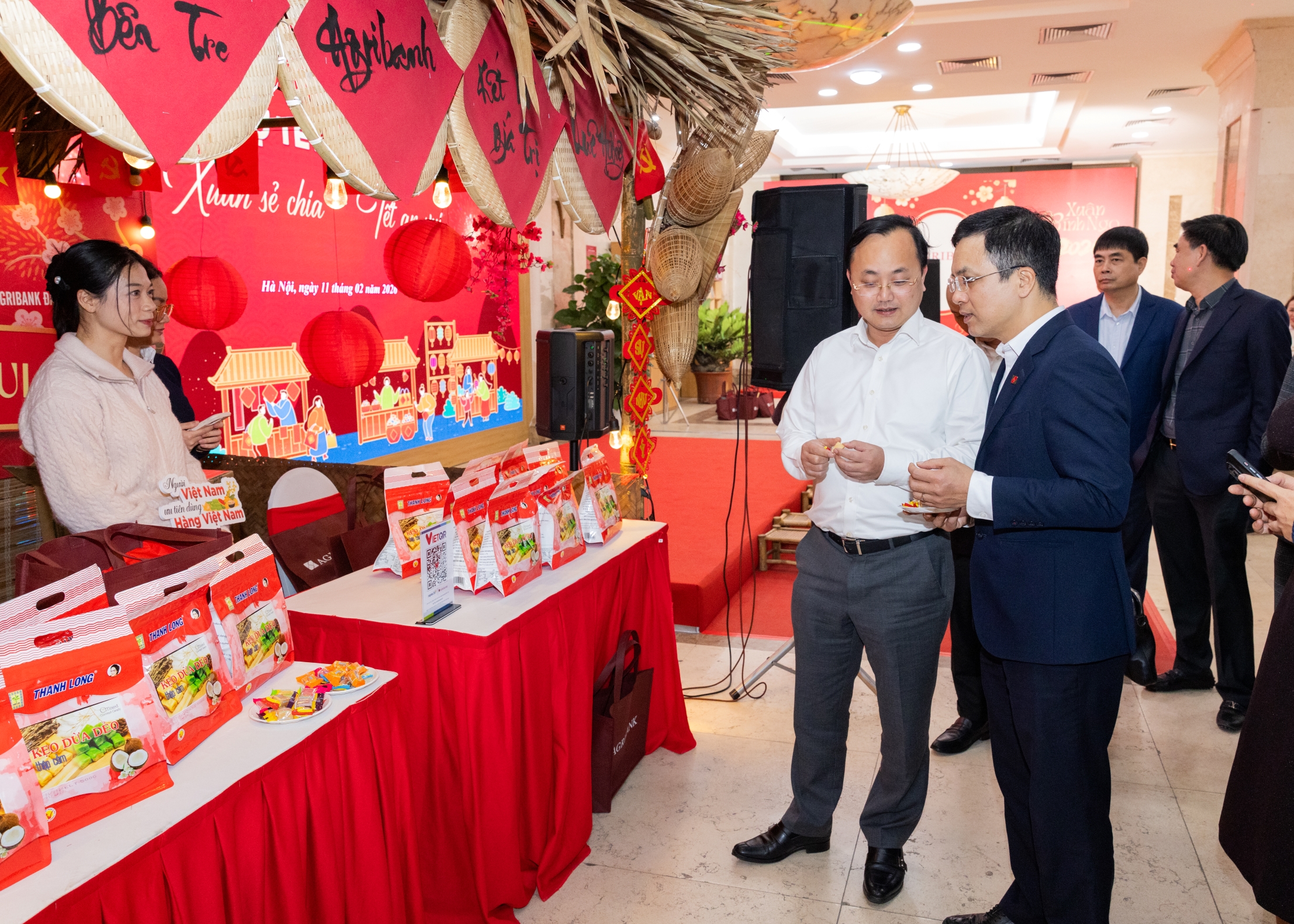 Tại Phiên chợ, các gian hàng được bố trí phong phú với thông điệp kết nối giá trị nông sản Việt như: kẹo dừa Bến Tre ngọt lành; hoa quả tươi bốn mùa; nước mắm – tinh hoa biển Việt; bánh đa đỏ Hải Phòng; gạo nếp – hạt ngọc đồng quê; khoai dẻo cao nguyên; trà lọc, bánh dừa OCOP; xúc xích, thịt lợn gác bếp đậm đà núi rừng; mứt dừa – sắc Xuân phương Nam… Thông qua đó, Agribank tiếp tục khẳng định vai trò đồng hành cùng người dân, doanh nghiệp vay vốn trong việc hỗ trợ quảng bá, tiêu thụ nông sản, đồng thời đưa các sản phẩm chất lượng cao đến gần hơn với người tiêu dùng, góp phần lan tỏa giá trị nông sản Việt trong mùa xuân mới.